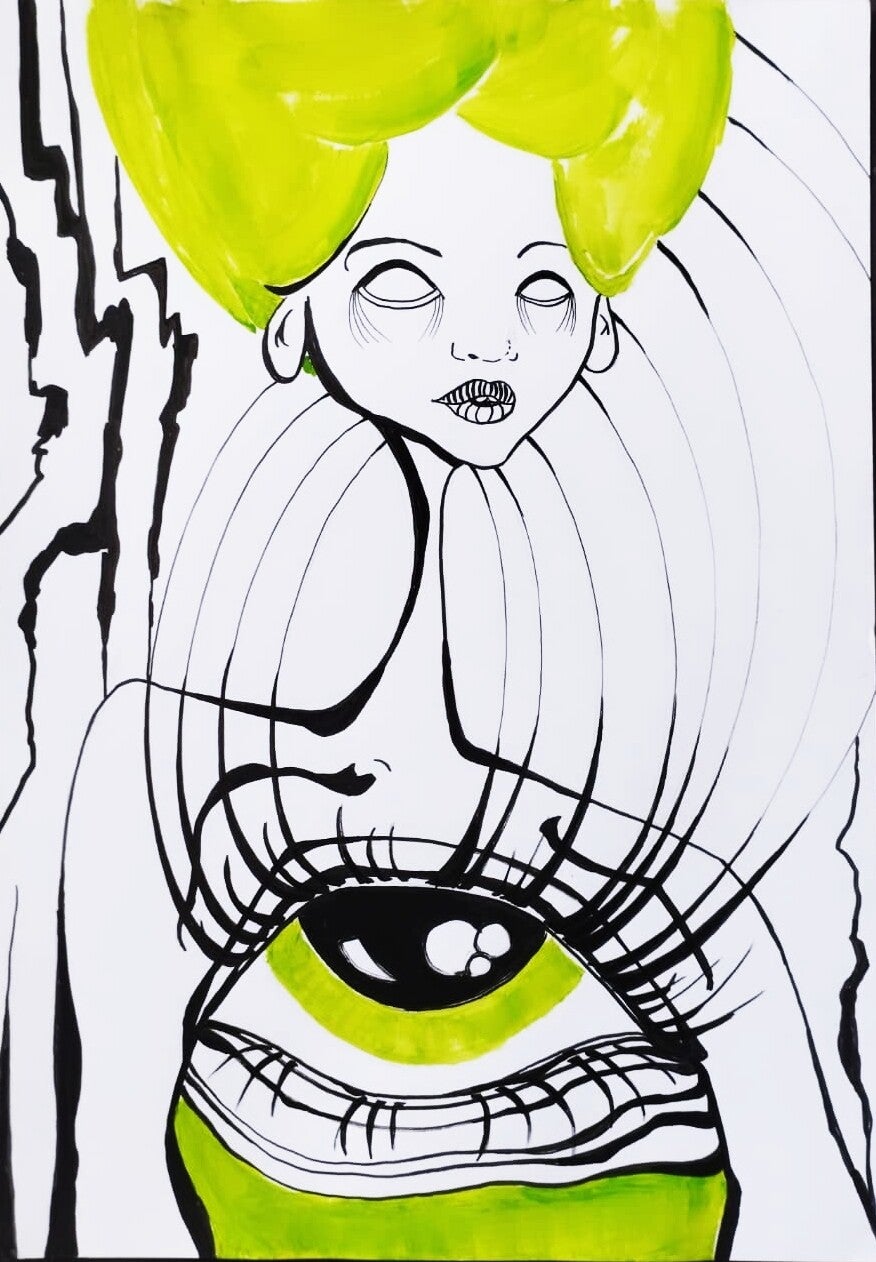 „PUSSPOWER“ ist ein lebendiges und farbenfrohes Kunstwerk, das ich in einem dynamischen Comicstil gestaltet habe. Es fällt sofort durch seine intensive und kontrastreiche Farbpalette auf. Die abstrakte Darstellung der Vulva auf soll auf kreative Weise wichtige feministische Botschaften vermittelt. Das Werk feiert die natürliche Schönheit, die Vielfalt und die innere Stärke der Weiblichkeit und stellt sich bewusst gegen gesellschaftliche Tabus und Einschränkungen im Umgang mit dem weiblichen Körper.
